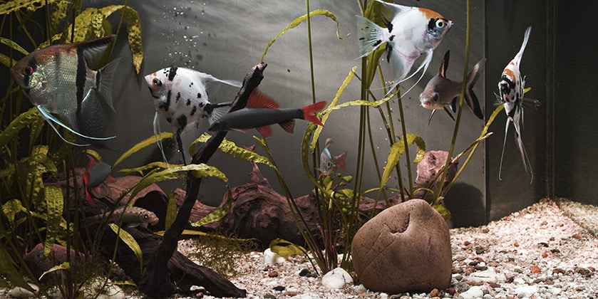 Dyreforretning med fisk, gnavere og andre pattedyr